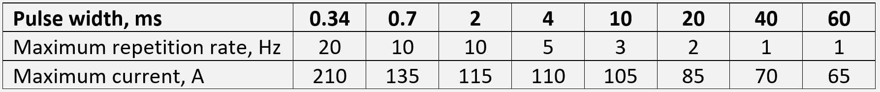 0.34 ms, 10 Hz, 210 А